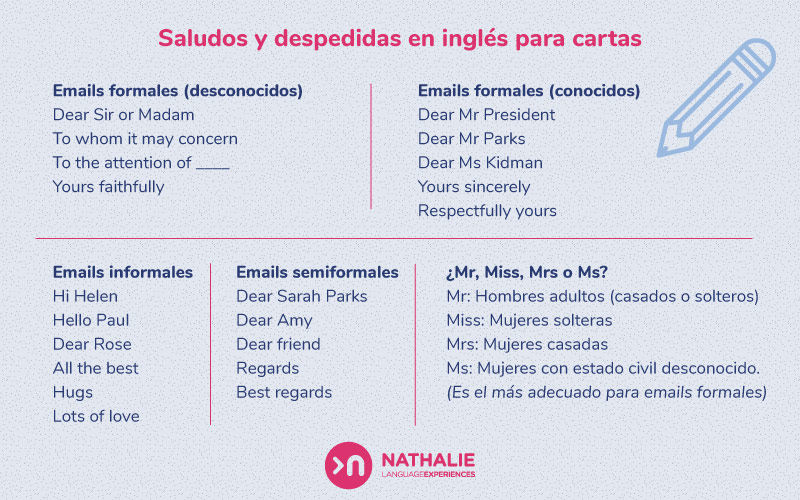 Fíjate que las expresiones se diferencian por su nivel de formalidad. Por ejemplo, «To whom it may concern», significa “A quien pueda interesar”. Es una fórmula muy seria y se emplea cuando no sabes a quién te diriges, muy útil cuando envías tu currículum solicitando un empleo.
