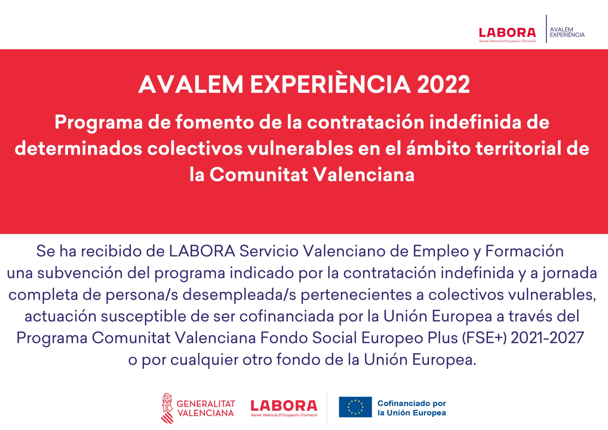 Por el programa de subvenciones ECOVUL 2022 destinadas a fomentar la contratación indefinida inicial de colectivos vulnerables.